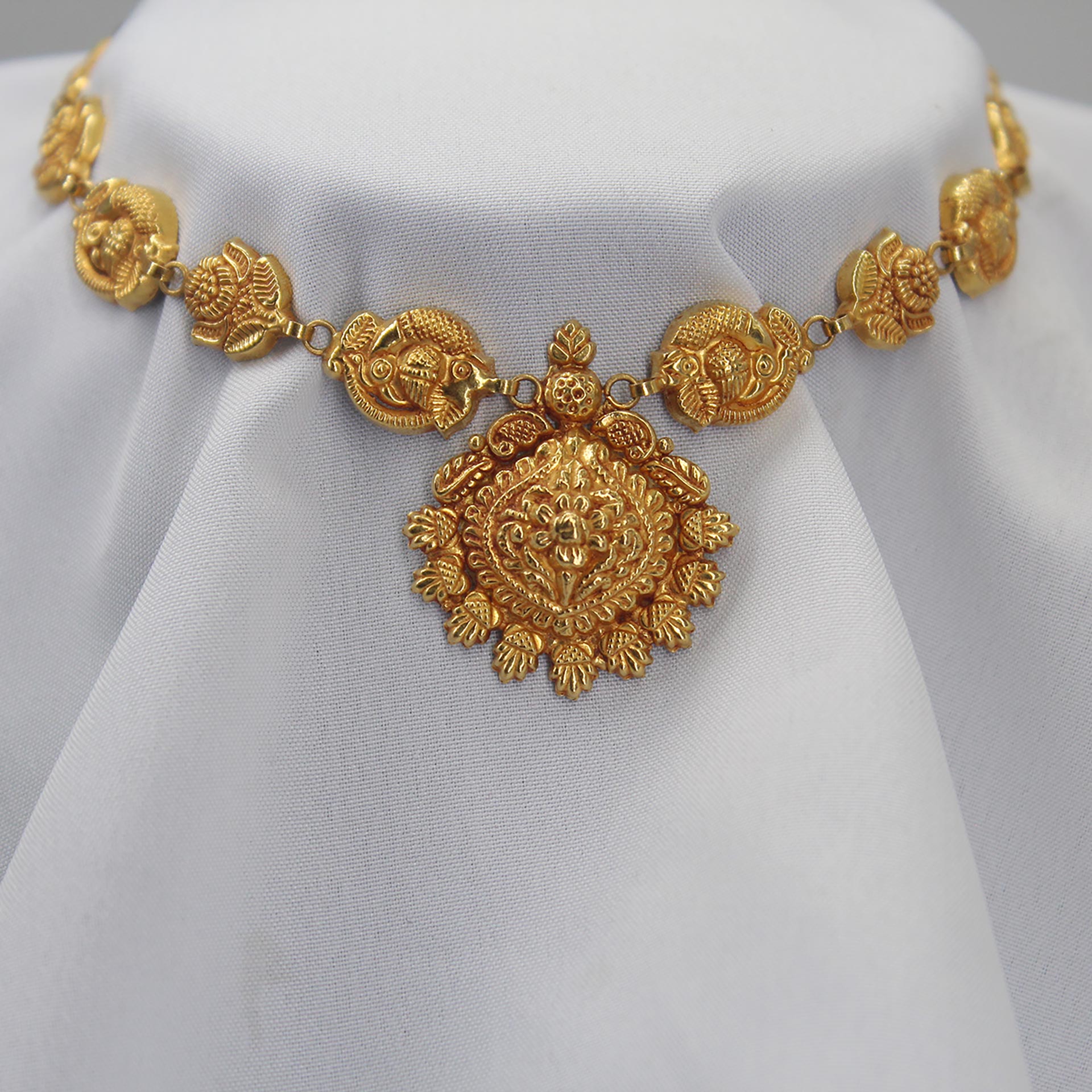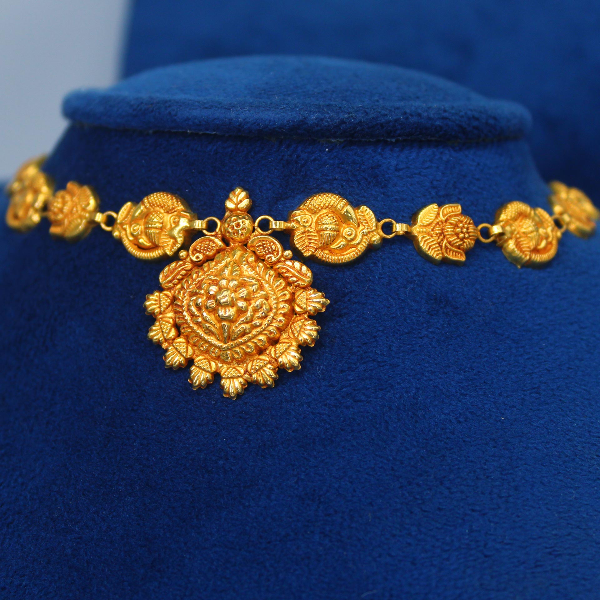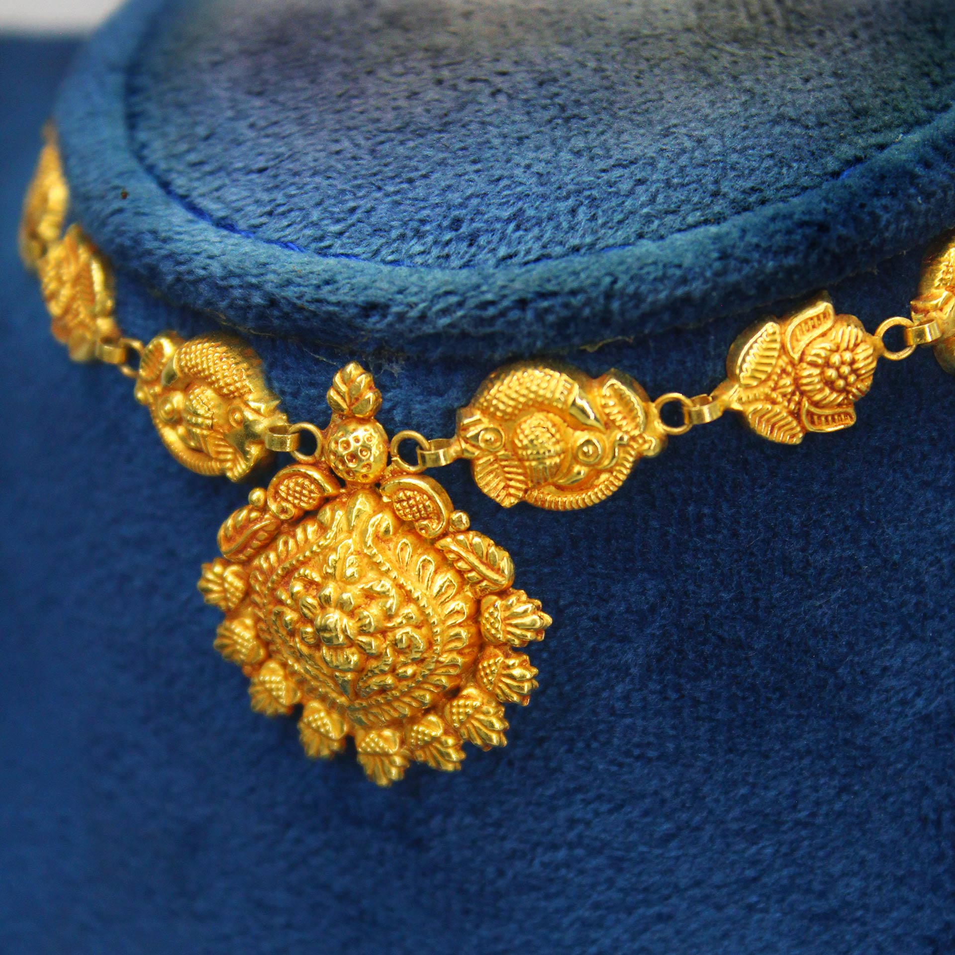 Crafted in 22K gold, the necklace is lightweight and comfortable, making it suitable for daily wear as well as small occasions. Its minimal yet detailed design allows it to pair easily with both ethnic and modern outfits.