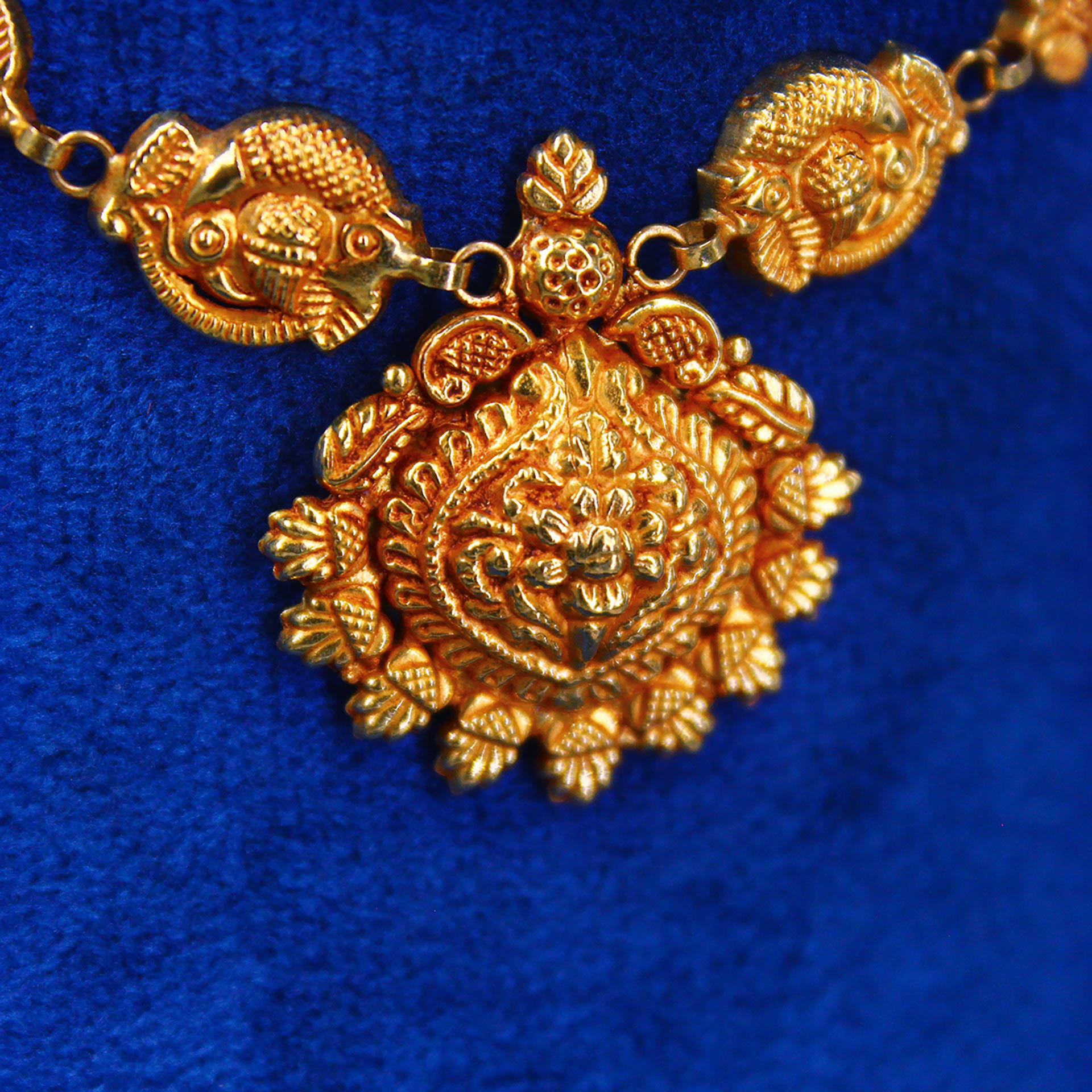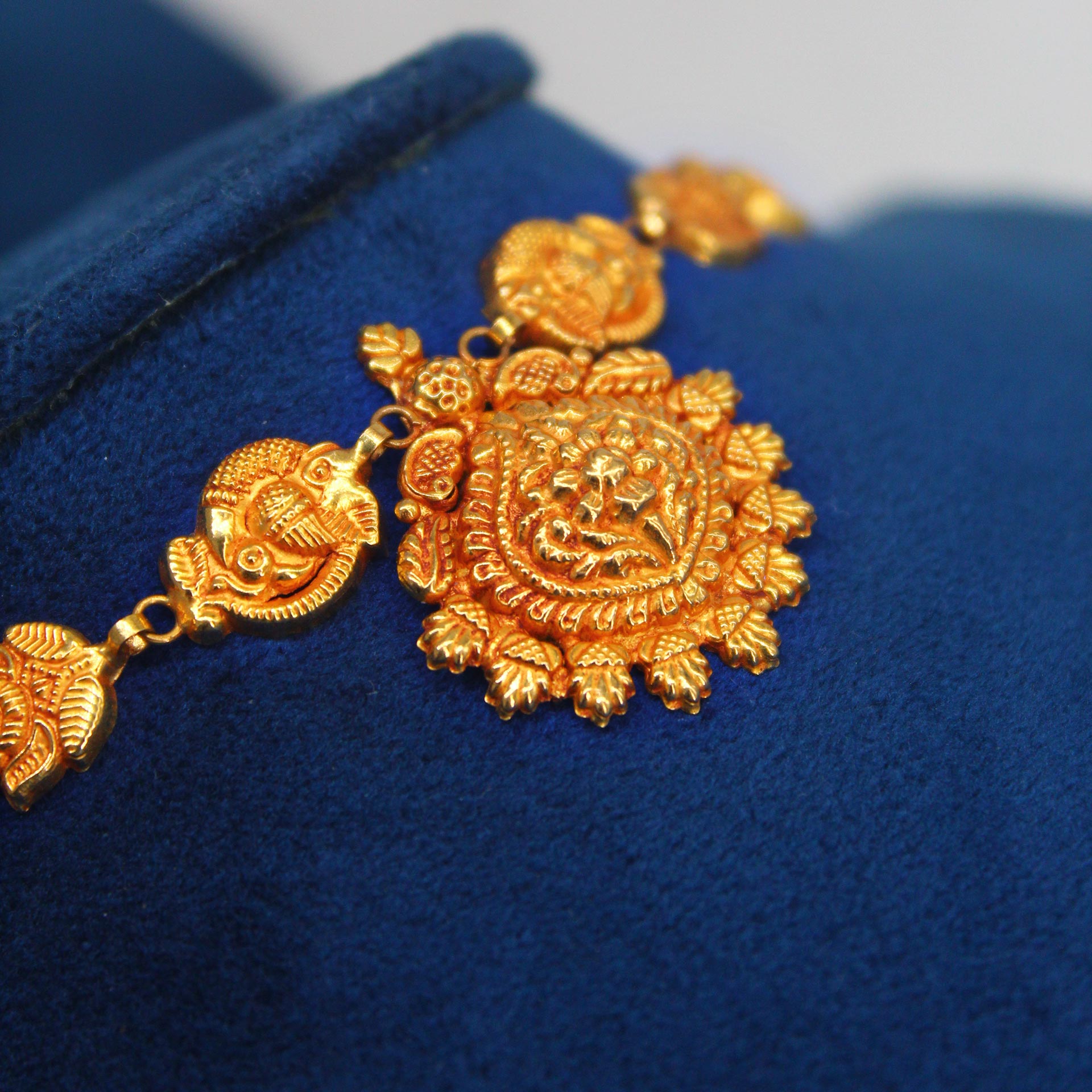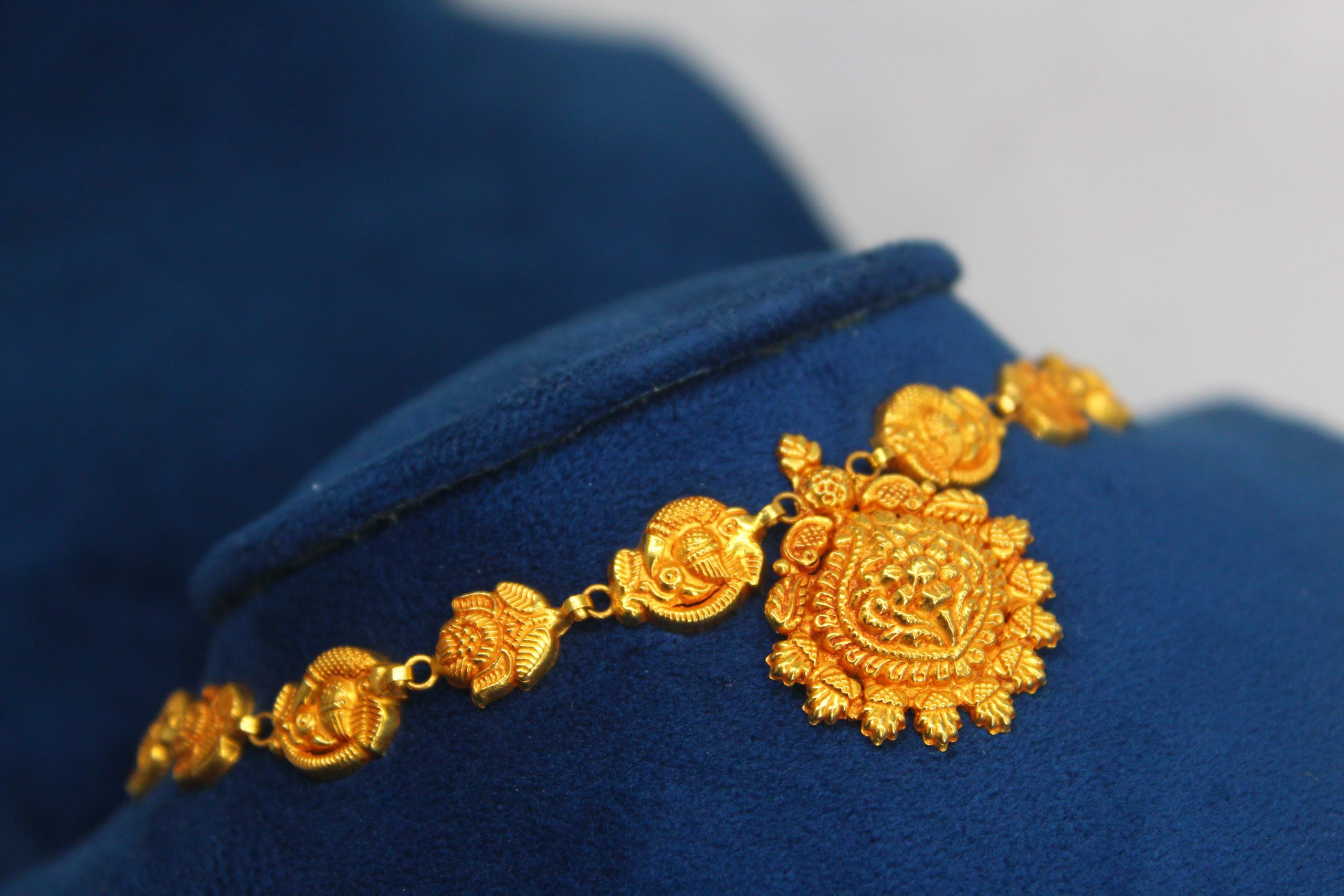 Crafted in 22K gold, the necklace is lightweight and comfortable, making it suitable for daily wear as well as small occasions. Its minimal yet detailed design allows it to pair easily with both ethnic and modern outfits.